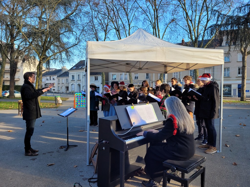 Puis nous avons donné des concerts tout public : deux concerts à la bougie à l’église Saint-Joseph à Angers et à l’église Saint-Martin au Lion d’Angers et un concert au Marché de Noël d’Angers.