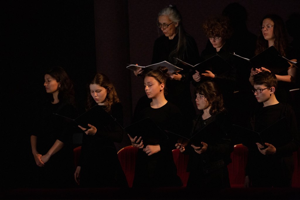 Enfin les trois Maîtrises se sont réunies autour de l’œuvre Pétronille, Aliénor(s), Gabrielle, Julie – Noëls à Fontevraud d’Aurélien Hallopeau.