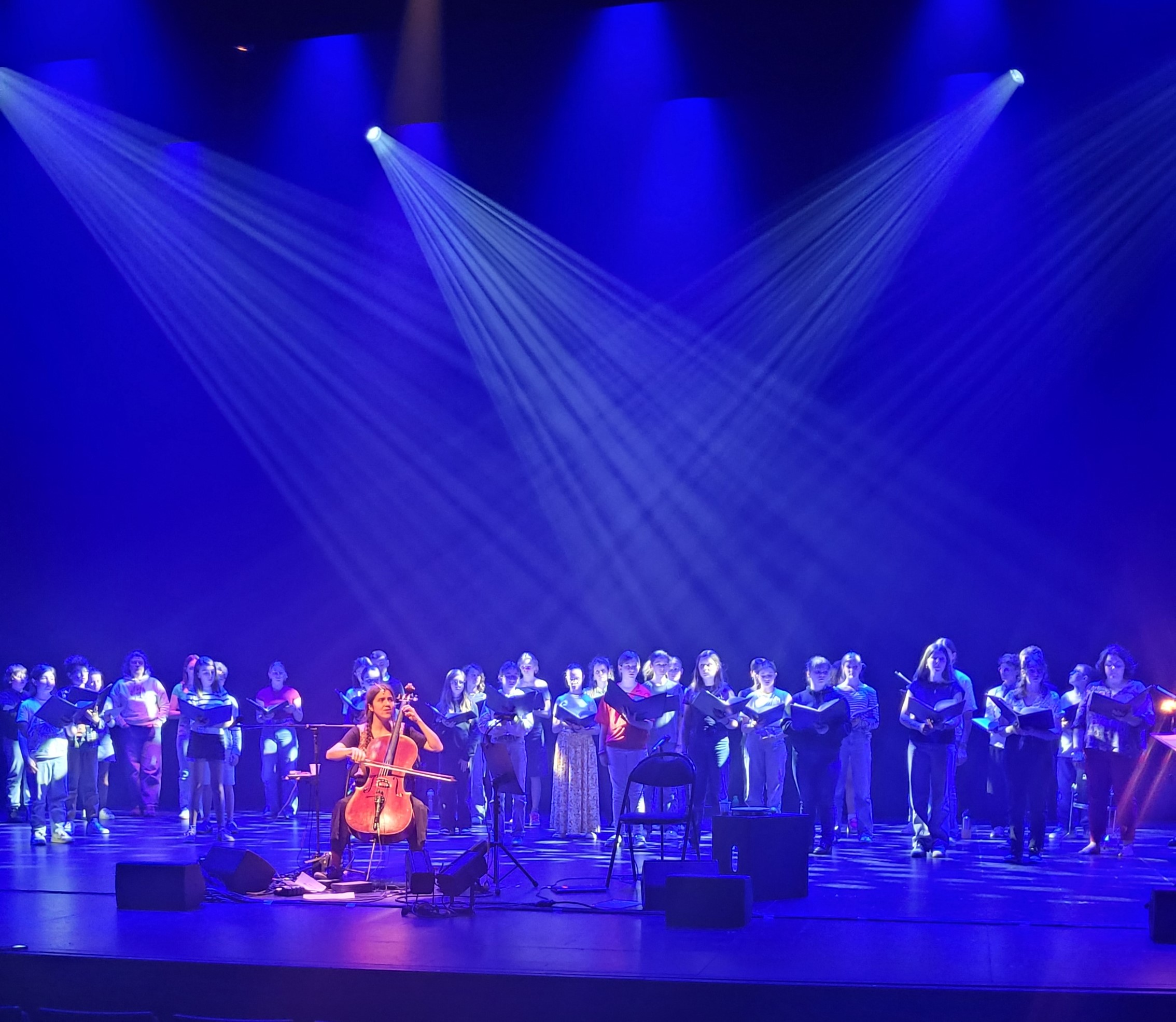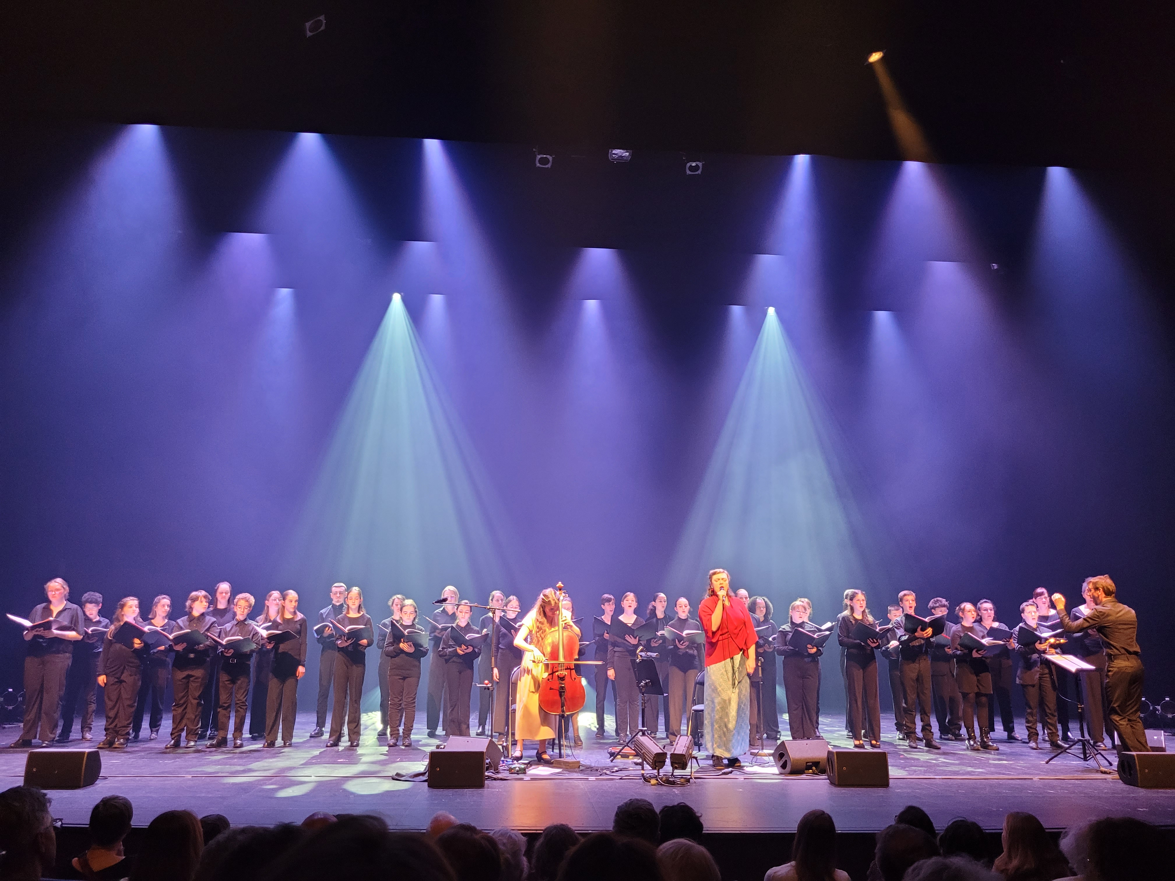 Le 16 mai dernier, la Maîtrise des Pays de la Loire a eu l’immense privilège de partager la scène du Théâtre Le Quai à Angers avec le duo envoûtant Birds on a Wire, composé de la chanteuse franco-américaine Rosemary Standley et de la violoncelliste brésilienne Dom La Nena. Ce concert, intitulé Le Chant des oiseaux, a célébré les dix ans de collaboration de ces deux artistes exceptionnelles, offrant au public un voyage musical empreint de poésie et d’émotion.